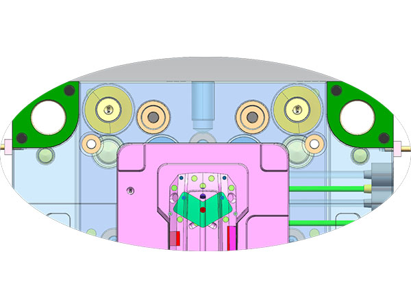 型腔表面镶嵌铍铜合金(BeCu)镶件,热导率(130W/m·K)是钢材的3倍,实现局部快速导热